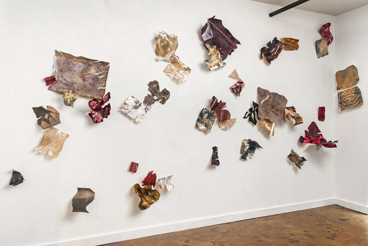 Symbiotic Relatives, Installation at Ricochet Gallery, 2022, 8 x 10 ft, chemigrams on silver gelatin paper, Photographed by Tommy Bruce