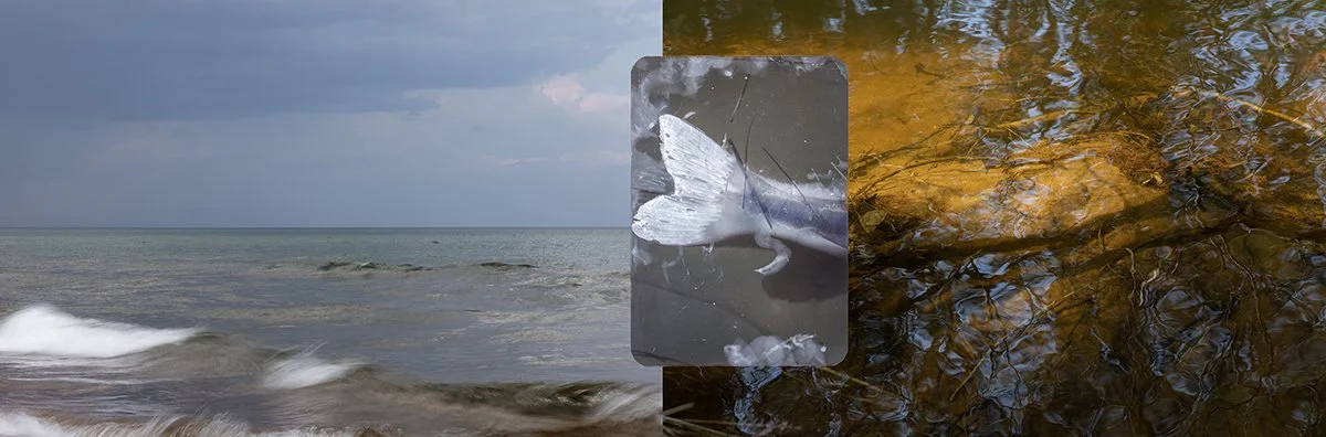 But, our fish friends that live in our own time period swim between more recently drawn borders related to privately “owned” land and water. I had one encounter a few years back with a longnose sucker likely wounded by an eagle laid to rest in a small tributary running through 26,000 acres of private land, now closed off to its original human inhabitants. I was there, though, because I was given special access as an artist alongside a scientist – but members of the local tribes in the community are greeted by security guards at a locked gate. Yet the private club is stewarding the land, and there is a wildlife foundation so all is well, right? It feels very much not right within those fenced in forests. Echoing the question asked to me by Dr. Marty Reinhardt, the recently retired head of the Center for Native American Studies at Northern Michigan University in Marquette, Michigan – how have the tribes been involved [in this stewardship]? On my two separate visits to these lands, I did not receive any sort of answer. I hope this will change.